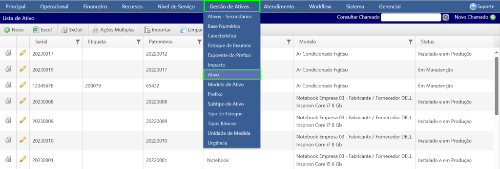 Acesse o menu (Gestão de Ativos / Ativo)