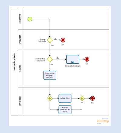 Primeiramente deve-se fazer o desenho do processo utilizando ferramenta BPMN como o bizagi: