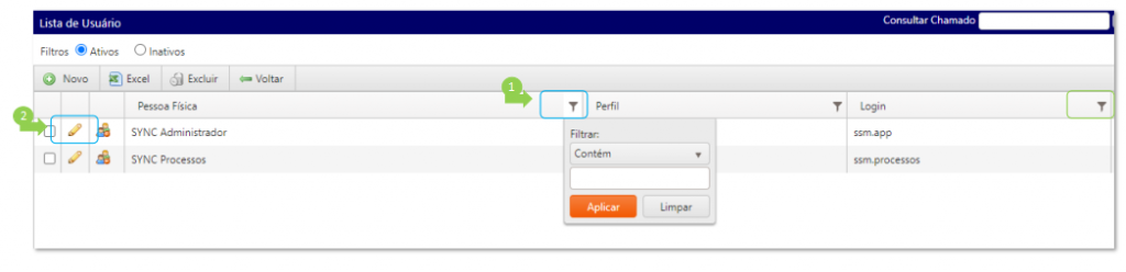 - Pesquise o usuário utilizando o filtro (pessoa física ou login)