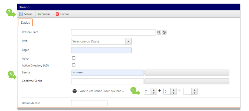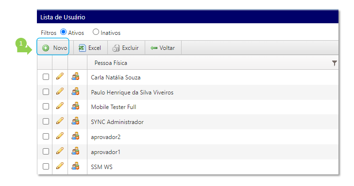 Para a criação de usuários pelo menu sistemas, é necessário que a *pessoa física já tenha sido criada no Sync.