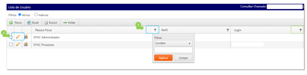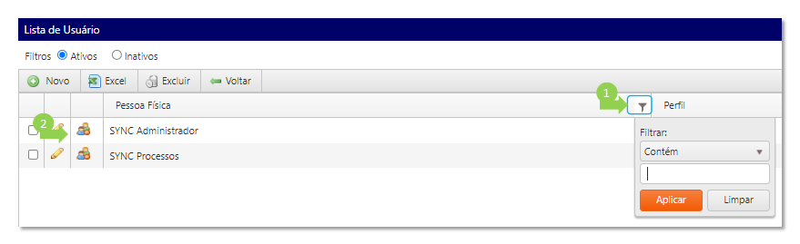 Menu Sistema > Usuário