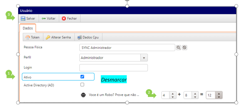 - Desabilite o campo: ativo