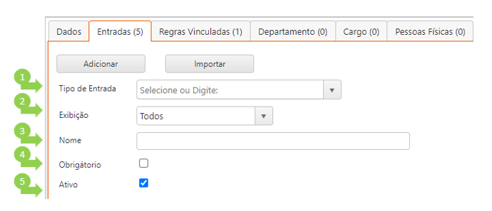 Entradas são os campos que ficarão disponíveis para preenchimento de informações na abertura do chamado.