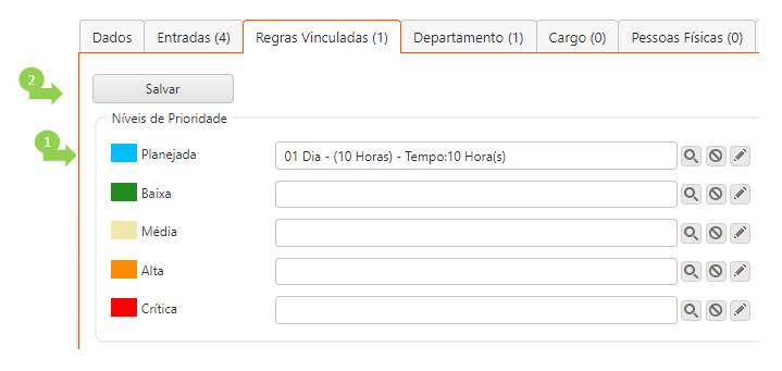 Poderão também ser configuradas outras regras para o chamado, com níveis de prioridade (baixa, média, alta, …)