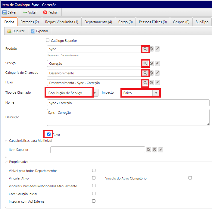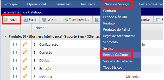 - Fluxo Acesse o menu: Nível de Serviço > Item de catálogo > Novo