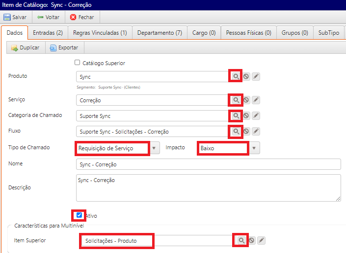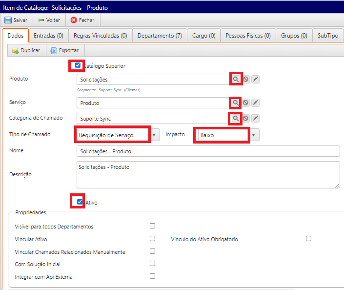 - Visível para todos os departamentos: opção para manter o item visível a todos os departamentos
