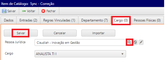 - Pessoa Jurídica: Pessoa Jurídica que pertence o cargo desejado