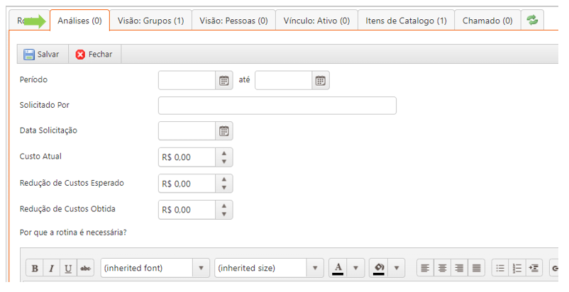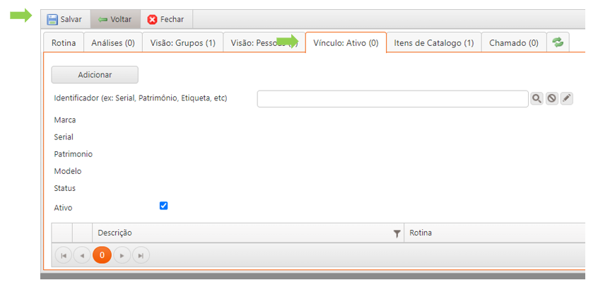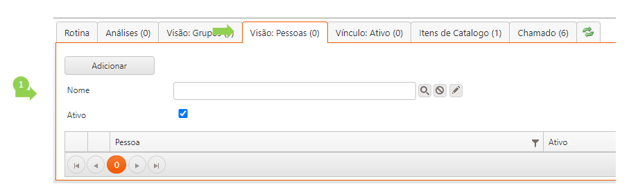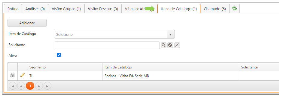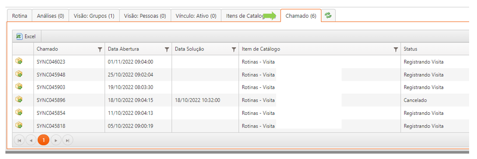 Nessa aba são registrados (e podem ser acessados) todos os chamados abertos a partir da rotina.
