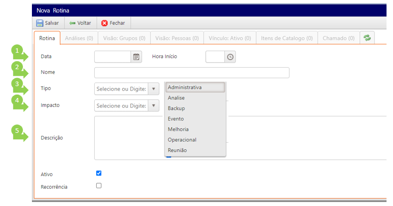 Caso seja associado um item de catálogo, a rotina irá abrir um chamado cada vez que for executada (conforme recorrência configurada).