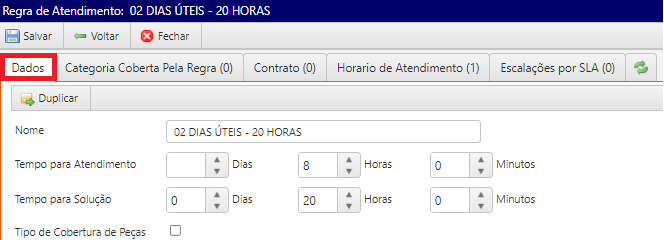 A regra de atendimento define o tempo de atendimento para ser vinculado aos níveis de prioridade no item de catálogo.
