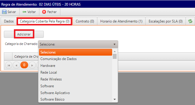 • Valor do SLA: percentual a ser alcançado pelo chamado
