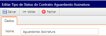 - Tipo de status de contrato: Adicione o nome do novo tipo de status e salve: