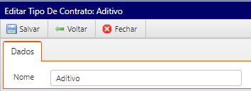 - Tipo de contrato: Adicione o nome do novo tipo de contrato e salve: